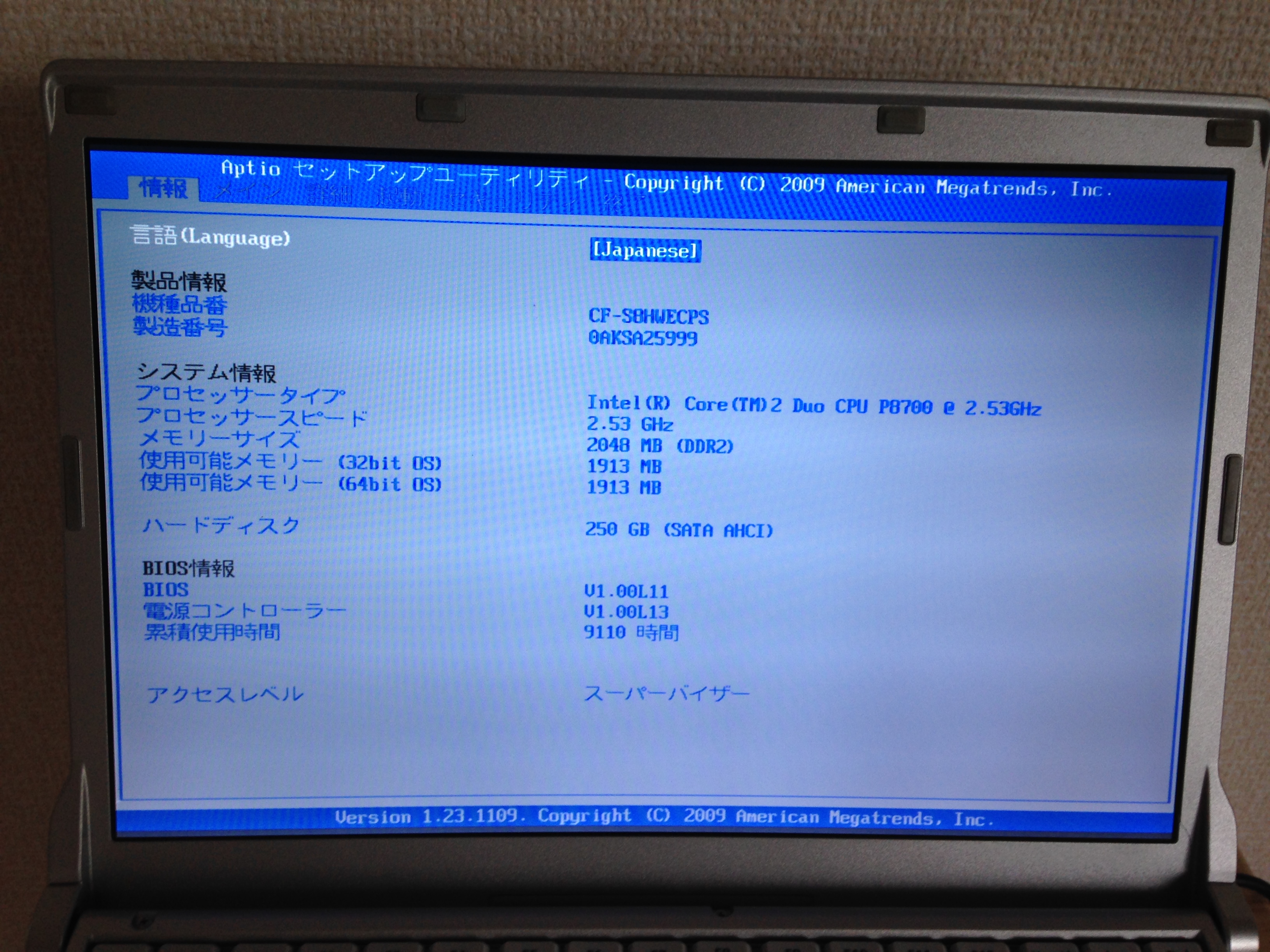で、無事 F2 を押すと以下の様な画面に遷移します。